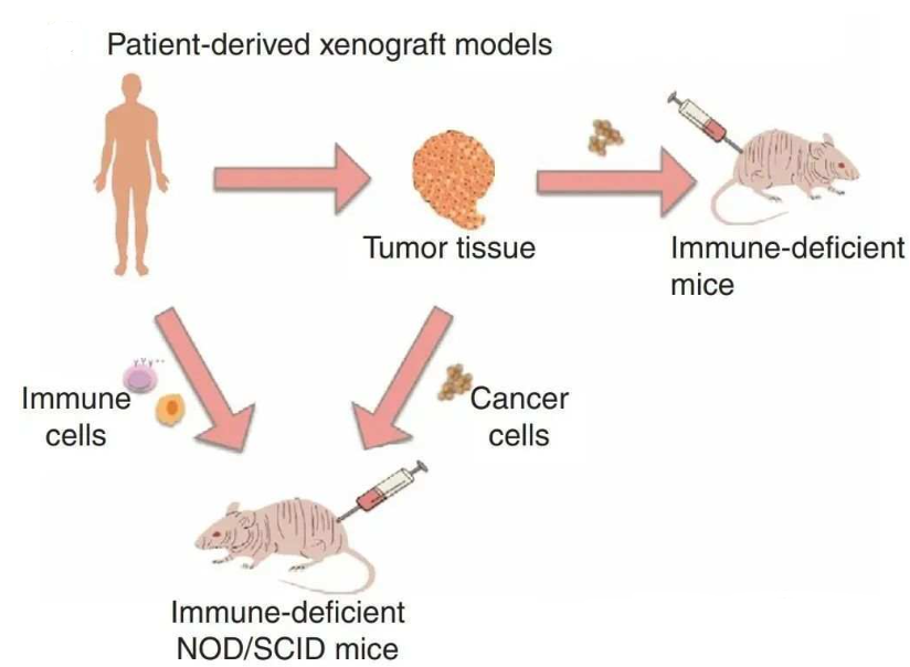 PDX模型:PDX為Patient-Derived Tumor Xenograft,人源性腫瘤組織異種移植(zhí)模型(xíng),是指將來源於患者的腫瘤組織植入免疫缺陷小(xiǎo)鼠體內,從而建立的移植瘤模型。