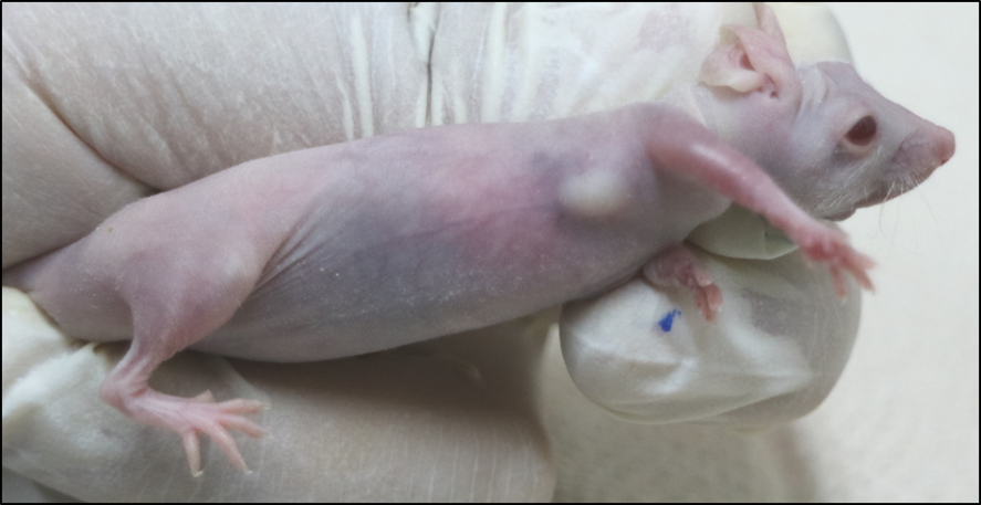 小鼠(shǔ)皮下腫瘤模型:利用已建立的人類腫瘤細胞(bāo)株移植於免疫缺陷的裸(luǒ)鼠,由於其免疫缺陷,腫瘤細胞或組織種植於其內很少發生排斥反應,應用範圍包括乳腺(xiàn)癌、宮頸癌、卵巢癌 、胃癌、直腸癌、肝癌、肺(fèi)癌 、胰腺癌、黑色素瘤、前列腺癌、淋巴瘤、膠質母細(xì)胞瘤等。